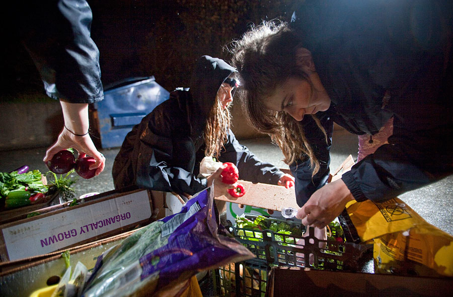 Menyelam mencari makanan di tempat sampah atau bisa disebut dumpster diving biasanya melibatkan mengaduk-aduk tumpukan sampah di belakang peritel, dengan maksud untuk menemukan makanan yang bisa diselamatkan.