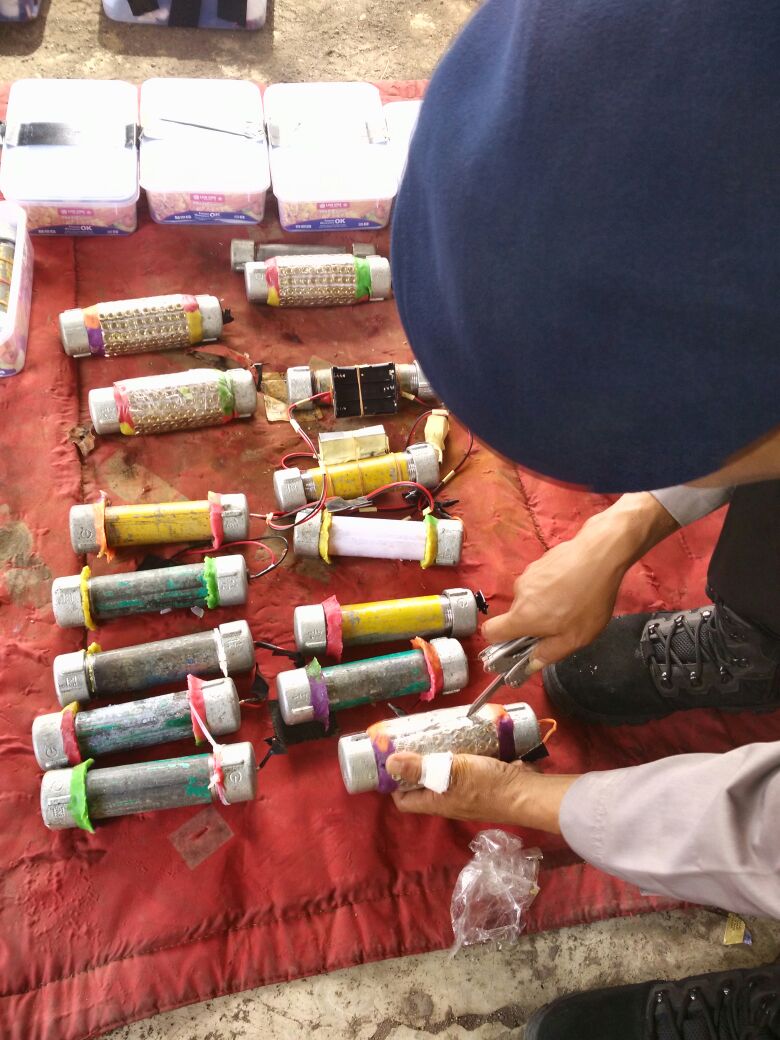 Dalam disposal ini, Barung mengatakan terdapat berbagai jenis bom yang dilumpuhkan. Rinciannya yakni 31 buah bom pipa yang terdiri dari 16 bom pipa terangkai dan 15 buah bom belum terangkai, 43 buah bom cangkir yang telah terangkai, 2 kilogram handak yang telah jadi, hingga 5 kg belerang dan 5 kg arang.