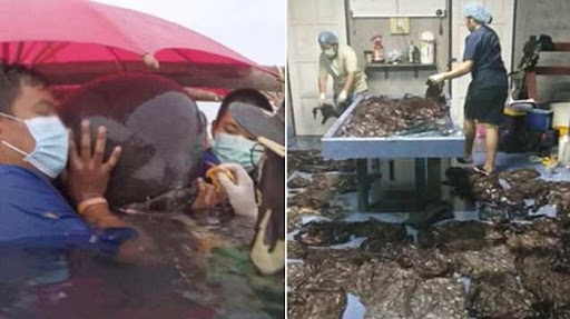 Perawatan intensif juga diberikan sepanjang hari, namun nyawa paus itu tak bisa tertolong pada Jumat sore waktu setempat karena rupanya sang paus telah menelan 80 kantong plastik seberat delapan kilogram.