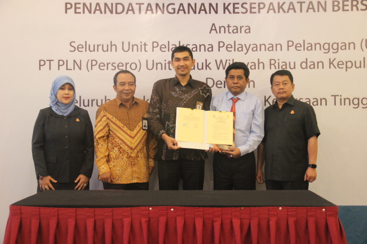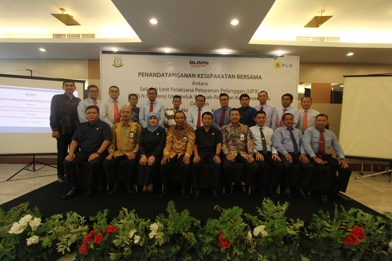 PEKANBARU - PT PLN (Persero) Unit Induk Wilayah Riau dan Kepulauan Riau menandatangani Nota Kesepakatan Bersama dengan Kejaksaan Negeri se-Provinsi Riau di Pekanbaru, Kamis (11/10/2018).