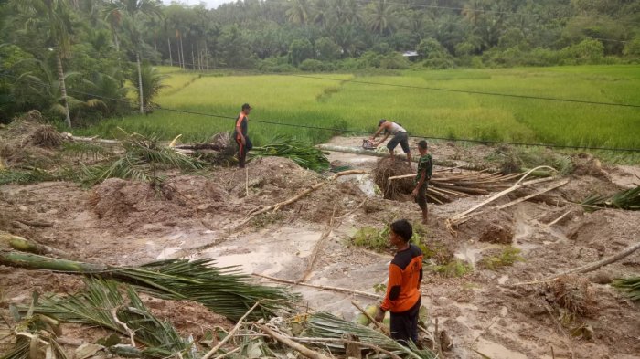 PADANG PARIAMAN - Longsor yang terjadi di Kecamatan Sungai Geringging, Kabupaten Padang Pariaman, Sumatera Barat, menimbun 1 keluarga yang tinggal di gudang batu bata. Tiga orang dilaporkan meninggal dunia dan 1 orang mengalami luka ringan.