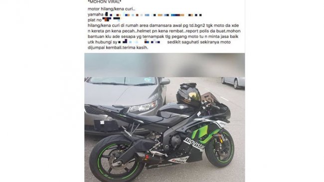 Dilansir World of Buzz, pria bernama Mohd Khairul melaporkan rumahnya telah mengalami pencurian yang mengakibatkan ia kehilangan sebuah motor Yamaha R6 di area Damansara. Motor diketahui menghilang ketika Khairul ingin berangkat kerja.