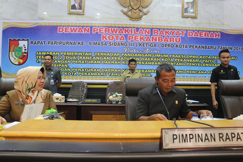 Rapat yang dipimpin oleh Wakil Pimpinan DPRD Kota Pekanbaru Sigit Yuono beserta asisten II Wali Kota Pekanbaru, membahas tentang Rancangan Peraturan Daerah Kota (Raperda) Kota Pekanbaru tentang rencana industri kota pekanbaru tahun 2018-2038.