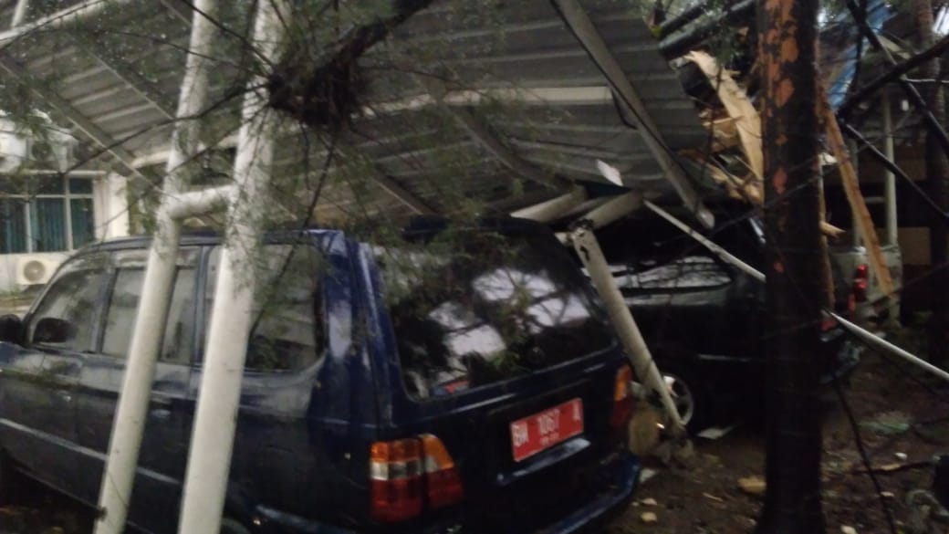 Akibatnya, pohon besar yang tumbang tersebut jatuh ke halaman kantor bersama Badan Pendapatan Daerah (Bapenda) Kota Pekanbaru dan merusak dua unit mobil, diantaranya mobil pengawasan milik Bapenda Pekanbaru jenis Hilux dan satu unit mobil jenis Kijang Innova.