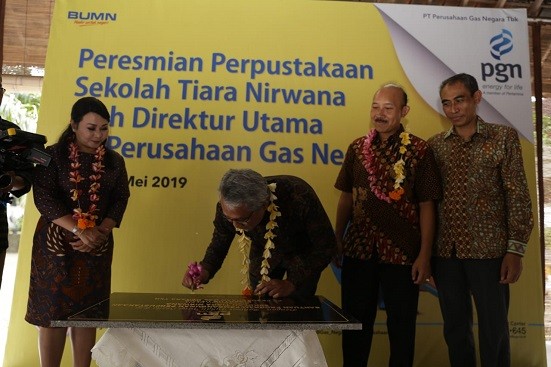 foto: Direktur Utama PT PGN Tbk Gigih Prakoso dalam Acara Peresmian Perpustakaan Sekolah Tiara Nirwana di Bali, Senin (27/5/2019).