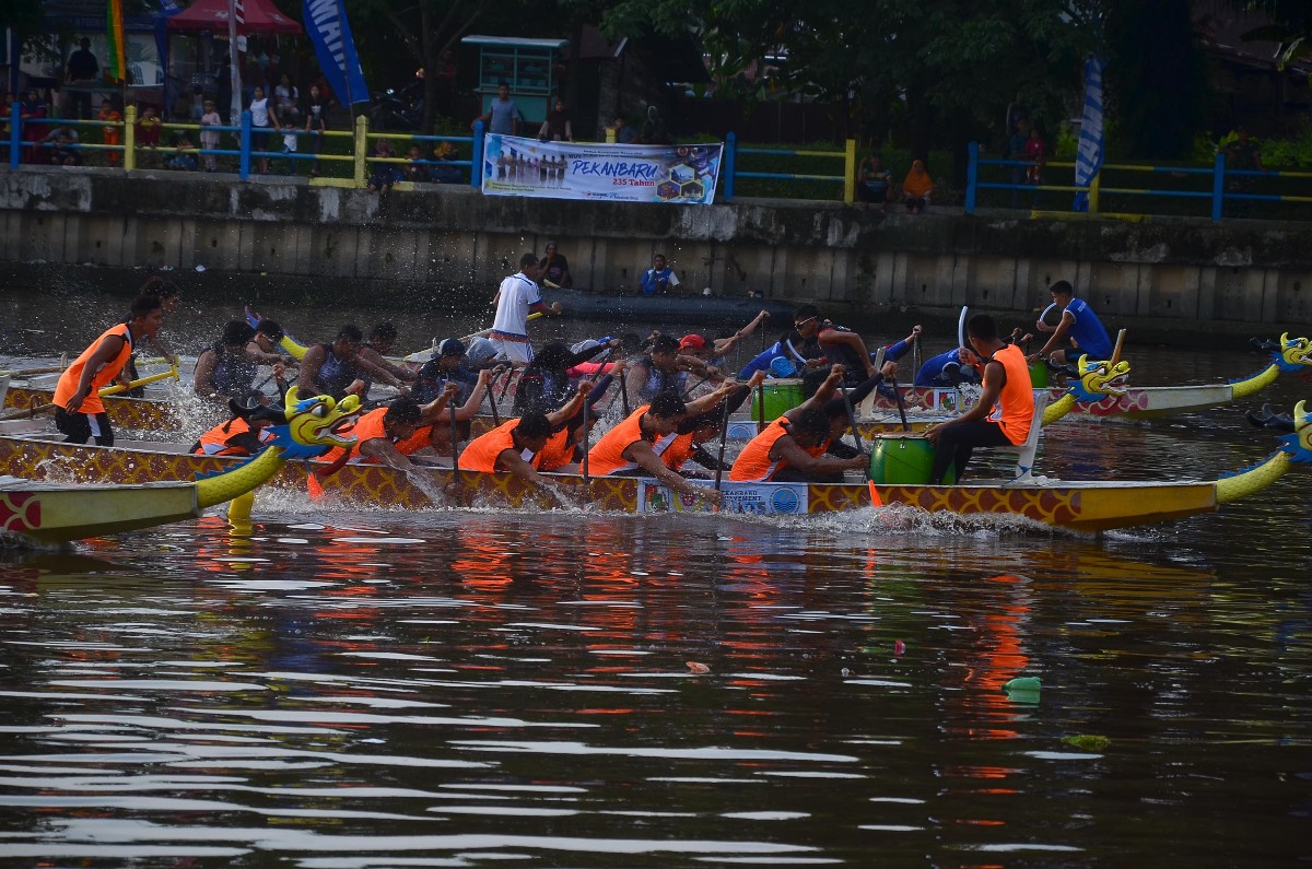 PEKANBARU - Dragon Boat Festival dalam rangka hari jadi Kota Pekanbaru ke-235 yang merupakan rentetan kegiatan dari Pekanbaru Internasional Dragon Boat Festival (PIDBF) 2019 di Sungai Siak berakhir Ahad (23/06/2019) sore.