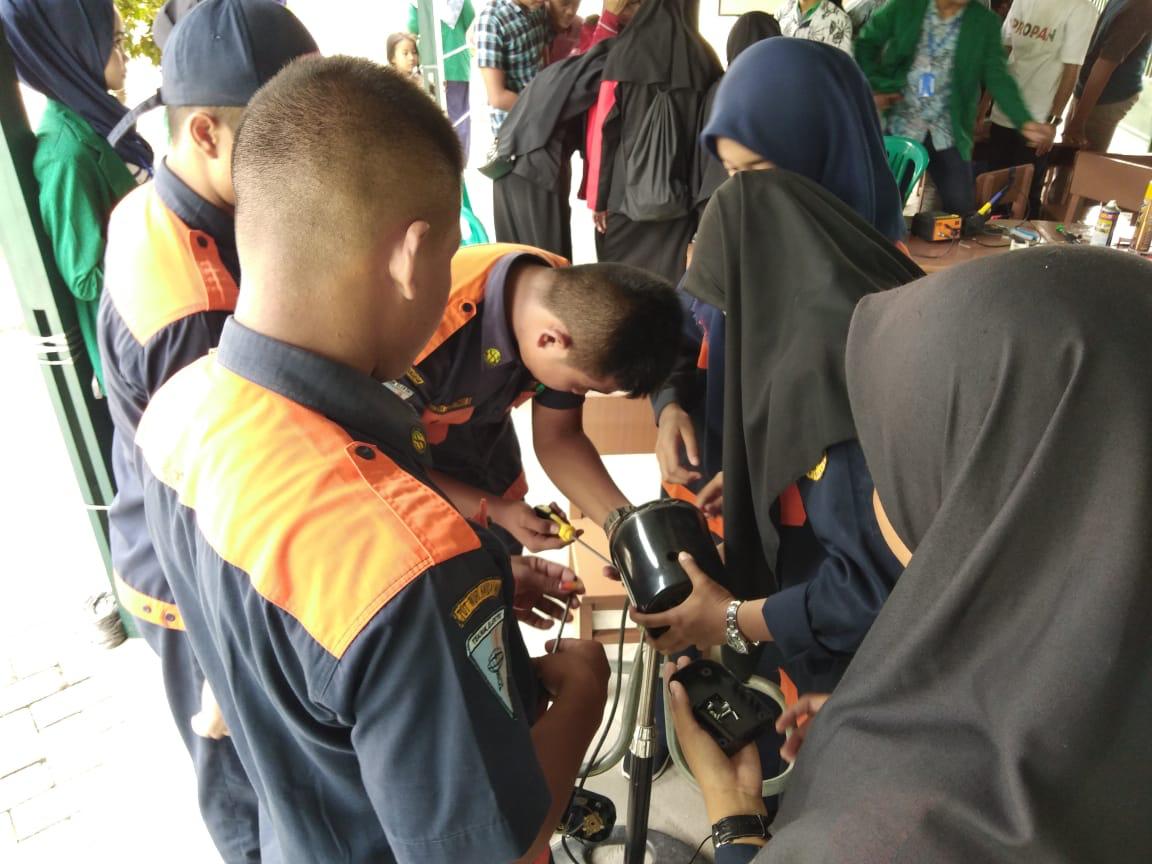 PEKANBARU - Mahasiswa Kuliah Kerja Nyata (KKN) kelompok 12 UMRI Kelurahan Bambu Kuning sukses melaksanakan pelatihan perbaikan handphone dan alat elektronika, Ahad (04/08/2019). Bertempat di Masjid Al Muawwanah Bambu Kuning, kurang lebih 22 peserta melihat dan juga langsung mempraktekkan tata cara perbaikan handphone dan barang elektronik lainnya.