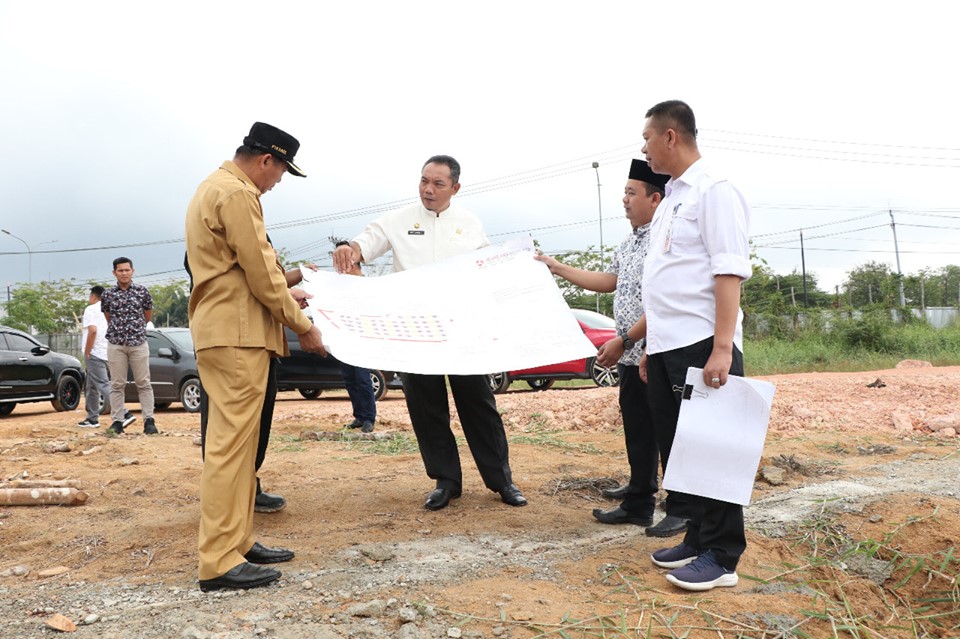 PEKANBARU - Wali Kota Pekanbaru, Dr. H. Firdaus, ST, MT meninjau areal pembangunan Pasar Induk Pekanbaru, Jumat (16/8/2019) siang. Ia melihat langsung aktivitas proyek di Jalan Soekarno-Hatta Ujung, Kota Pekanbaru. Saat ini capaian pembangunan pasar induk mencapai 45 persen.