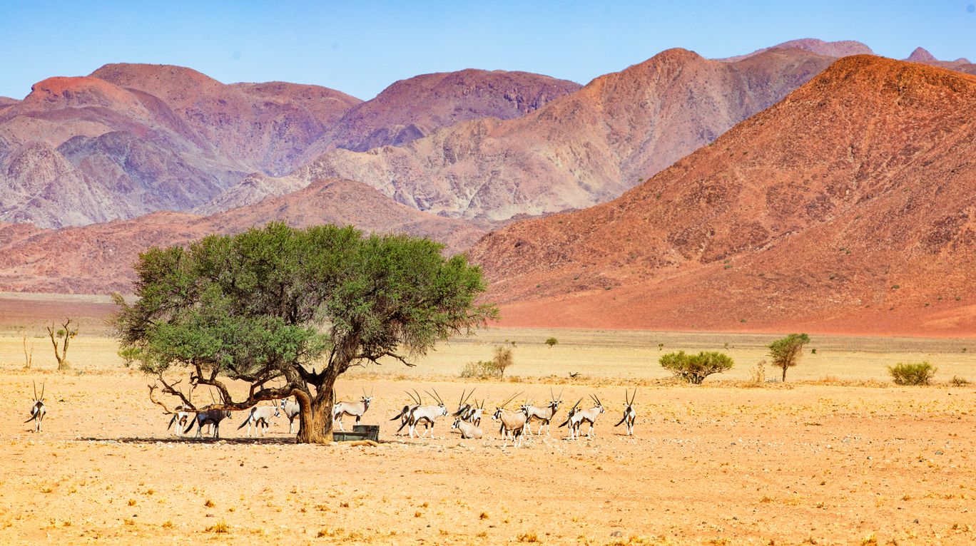Hewan yang hidup di sana sangat bisa beradaptasi dengan lingkungan. Binatang-binatang cantik seperti oryx, springbok, zebra sampai binatang buas seperti cheetah, hyena dan burung unta yang telah beradaptasi untuk bertahan hidup dalam kondisi yang keras ini berlari cepat melintasi padang pasir.