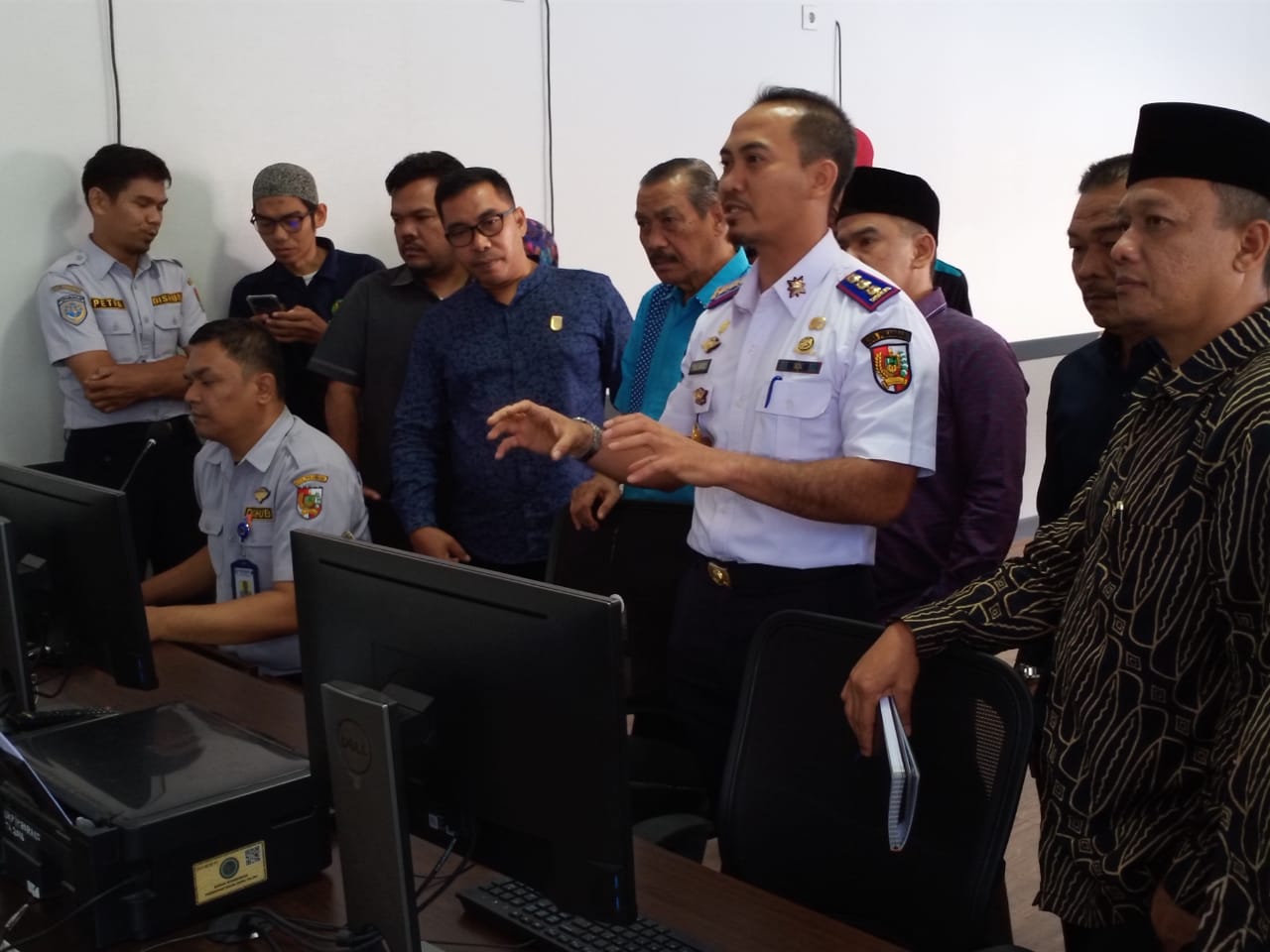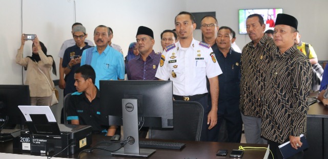 Rombongan Dewan diajak Kepala Dishub Kota Pekanbaru, Yuliarso melihat langsung ruang CS, dimana dalam ruangan ini terdapat alat bantuan pemerintah pusat yang bisa memantau arus lalu lintas di beberapa titik jalanan Kota Pekanbaru.