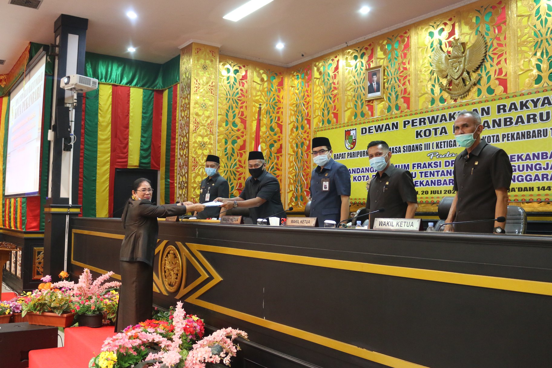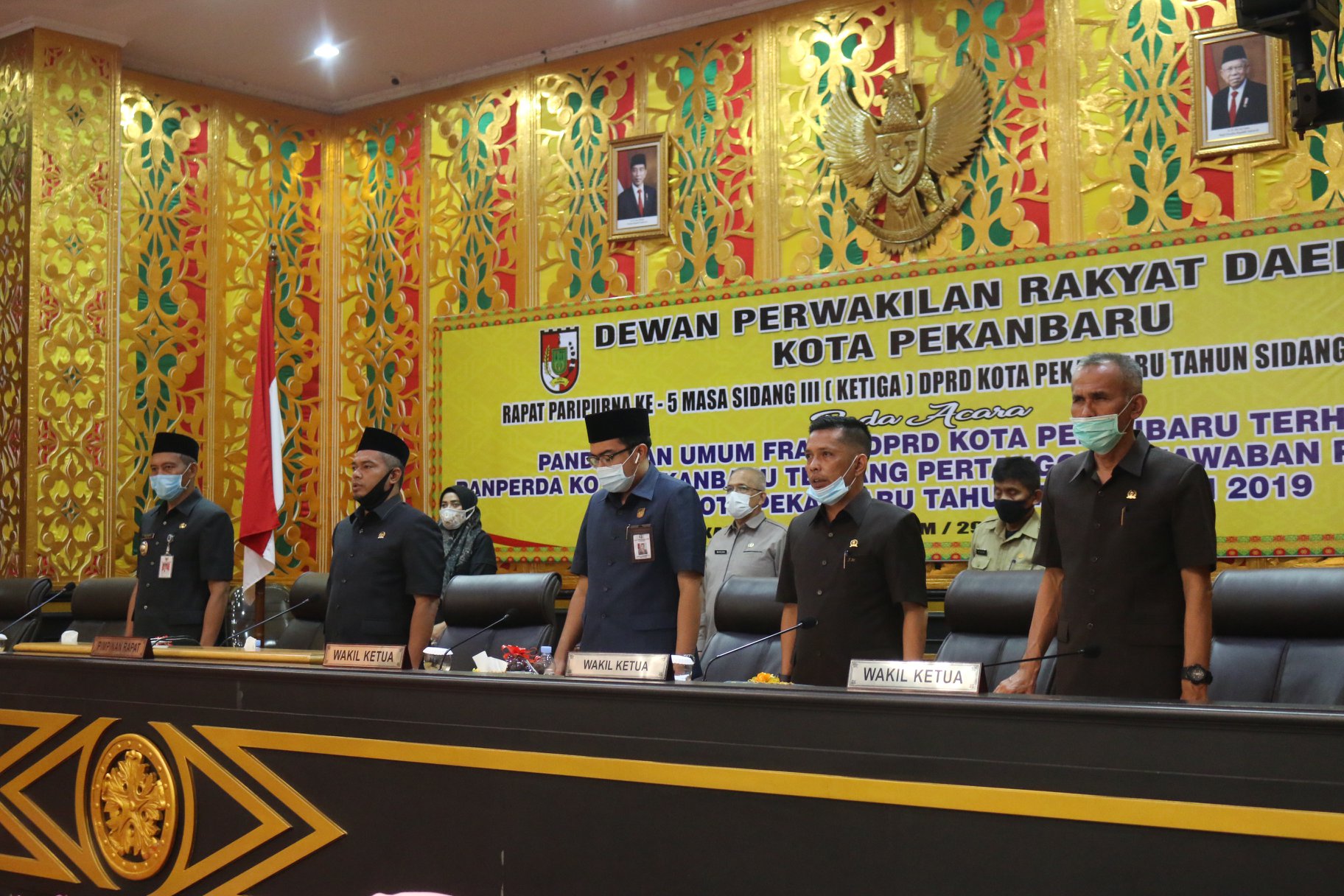 Paripurna ini langsung dipimpin Ketua DPRD Kota Pekanbaru Hamdani, didampingi Wakil Ketua Ginda Burnama, Tengku Azwendi Fajri, dan Nofrizal, serta Plt Sekwan Badria Rikasari.(Gallery/parlementaria)