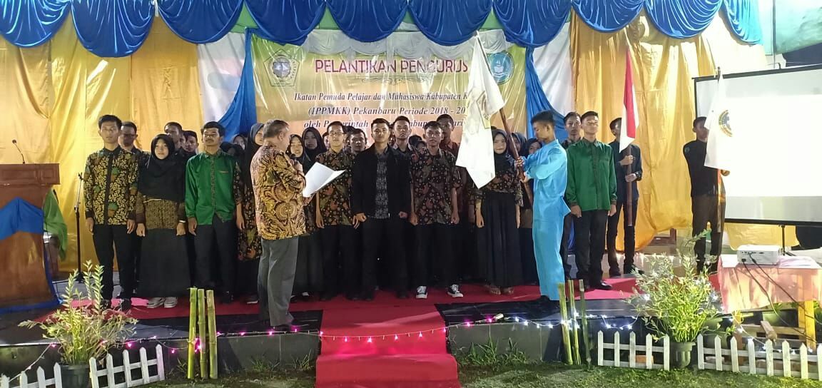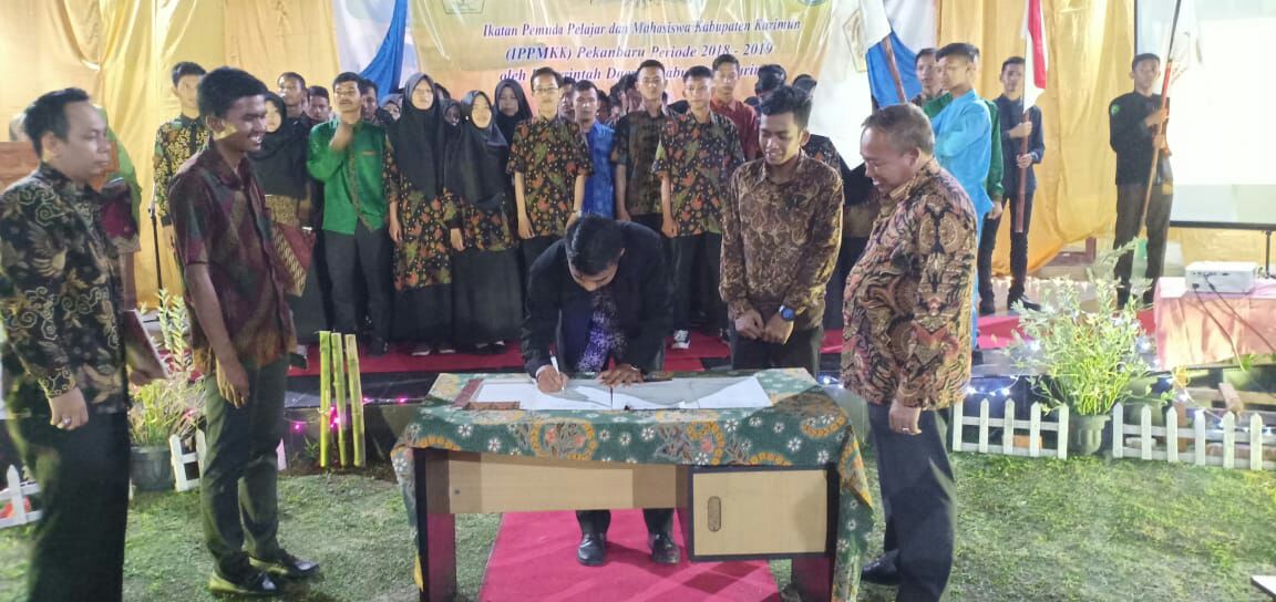 PEKANBARU - Bertempat di Aula Asrama Mahasiswa Kepulauan Riau, Pengurus Ikatan Pemuda Pelajar Mahasiswa Kabupaten Karimun (IPPMKK) Pekanbaru 2018/2019 resmi dilantik. Pengurus yang diketuai Sanjaya serta dibantu Muhamad Afham dan Arief Fatahillah sebagai ketua satu dan dua, dikukuhkan oleh Sekretaris Daerah Kabupaten Karimun, M Firmansyah MSi, Jumat (11/5/2018). Hadir juga pada kesempatan tersebut Pimpinan DPRD Azmi beserta Rombongan, Ketua Ikatan Warga Kepulauan Riau (IWKR) Pekanbaru, Ketua Ikatan Warga Kabupaten Karimun (IWKK).