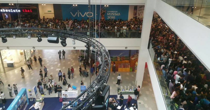Karyawan Switch kemudian membagikan tiket kepada orang-orang yang berada di barisan depan.