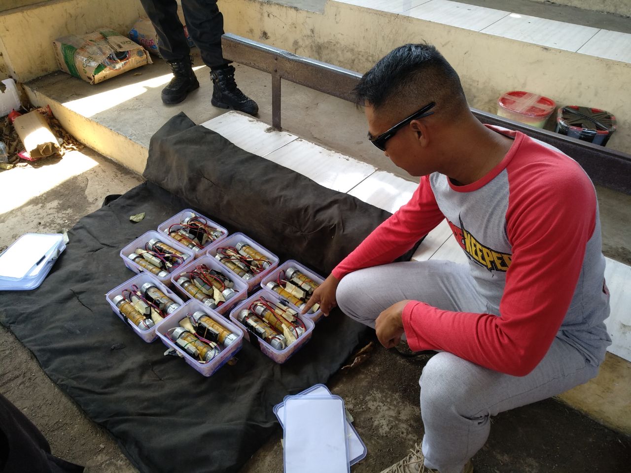 Dalam disposal ini, Barung mengatakan terdapat berbagai jenis bom yang dilumpuhkan. Rinciannya yakni 31 buah bom pipa yang terdiri dari 16 bom pipa terangkai dan 15 buah bom belum terangkai, 43 buah bom cangkir yang telah terangkai, 2 kilogram handak yang telah jadi, hingga 5 kg belerang dan 5 kg arang.