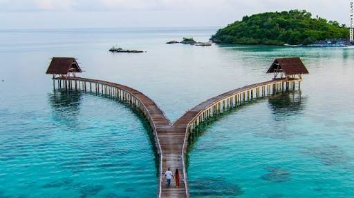 Resor yang sangat privat di Pulau Bawah ini membuat berlibur seperti berada di surga. Terletak di pinggir pantai, resor ini memiliki keindahan laut biru dan kolam renang infinity.