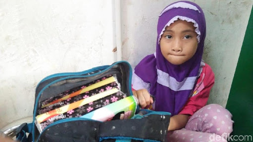 Dalam ranselnya tersebut ternyata terdapat 20-40 bungkus tisu sepulang sekolah mulai sore hari ia akan berjualan di stasiun cawang padahal rumahnya terletak di kawasan Depok.