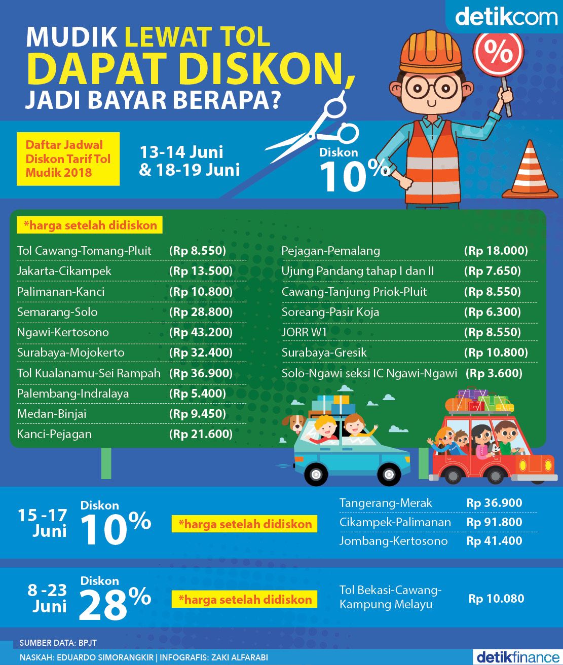 Melansir Badan Pengatur Jalan Tol (BPJT) yang dikutip detikFinance, Selasa (12/6/2018), berikut daftar tol yang menerapkan diskon: