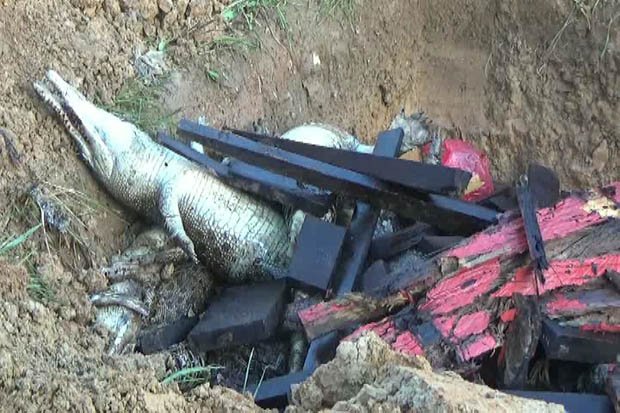 SORONG - Pihak BKSDA Sorong memusnahkan ratusan bangkai buaya di penangkaran buaya milik CV. Mitra Lestari Abadi di jalan bandara, SP 1, kelurahan Klamalu, Distrik Aimas Sorong Papua Barat. Ratusan bangkai buaya yang sudah mengeluarkan bau tak sedap ini dimusnahkan dengan cara dibakar sebelum ditimbun dengan tanah.