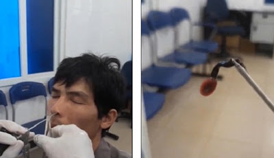 Dikutip dari Daily Mail, pasien yang identitasnya tidak diketahui, duduk dengan tenang ketika dokter mulai memasukkan alat di lubang hidungnya. Kejadian ini berlangsung di Nghe An, sebuah provinsi di utara negara itu, sekitar 300 kilometer selatan ibukota Hanoi.