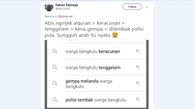 3. Semacam sudah jatuh tertimpa tangga pula. Kasian kali warga Bengkulu.