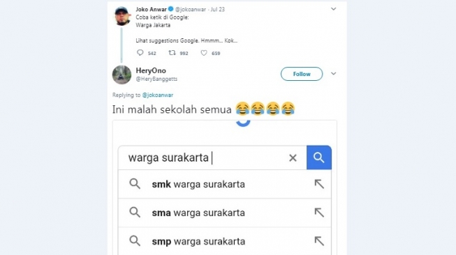 Lucunya, suggestion yang muncul di kotak pencarian Google mengundang tawa. Berikut ini lima hasil pencarian iseng warganet saat ketik warga kota-kota di Indonesia: