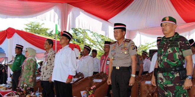 PEKANBARU - Bertajuk “Mewujudkan Akademisi Hebat dan Berwawasan Moderat untuk Indonesia Kuat serta Deklarasi Setia NKRI, Anti Hoax dan Radikalisme, UIN Suska Riau bekerjasama dengan Forkopimda Provinsi Riau, menggelar Apel Akbar dan Sholawat. Kegiatan yang dilangsungkan Kamis (26/7/2018) sore di halaman gedung rektorat UIN Suska Riau itu dipadati masa berseragam hitam putih yang dilengkapi dengan ikat kepala Merah Putih.
