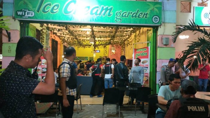 MEDAN - Personel gabungan Satreskrim dan Satnarkoba Polrestabes Medan menggerebek tempat dugem alias diskotek khusus anak-anak yang berkedok ruko Ice Cream Garden, kompleks MMTC, Jalan Selamat Ketaren Medan Estate, Sumatera Utara.