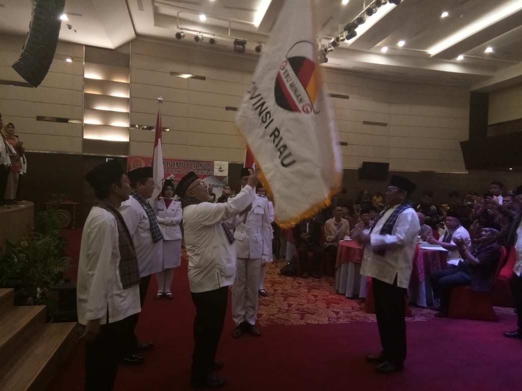 OSO yang juga Wakil Ketua MPR dan Ketua DPD RI hadir mengukuhkan kepengurusan Gebu Minang Provinsi Riau, didampingi istrinya, Yati Oesman Sapta.