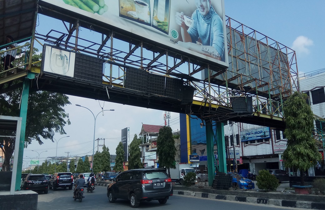 Waspada, Runningtext LED Pemko di JPO Tambusai-Ahmad Dahlan Rubuh