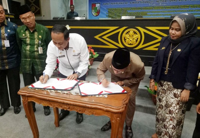 PEKANBARU - APBD Perubahan (APBD-P) Kota Pekanbaru 2018 akhirnya disahkan Rp2,6 triliun. Pengesahan diumumkan dalam sidang paripurna yang digelar di DPRD Pekanbaru dan dihadiri Sekda Kota Pekanbaru, M Noer Mbs. Dalam sidang yang digelar Kamis (27/9/2018) dan dipimpin langsung Ketua DPRD Pekanbaru, Sahril SH ini juga dihadiri sejumlah pejabat Pemko lainnya.