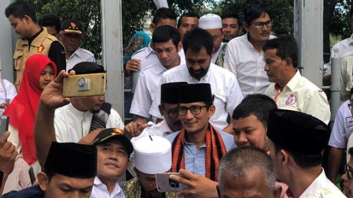 BANDA ACEH - Cawapres Sandiaga Uno berziarah ke Makam Sultan Iskandar Muda di Banda Aceh, Aceh. Sandiaga disambut emak-emak yang menamakan diri Bidadari Indonesia Banda Aceh.