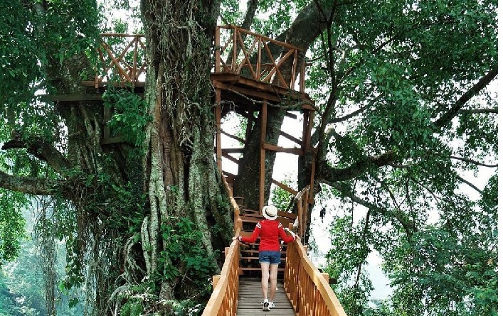 Lalu setelah itu kamu bisa naik ke atas untuk berfoto di rumah pohon ini, akhir-akhir ini tempat wisata ini menjadi hits lantaran tempat fotonya yang instagramable di atas jembatannya. Lokasi ini berada di ketinggian 900 mdpl.