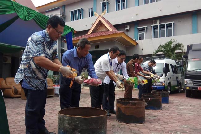 Pemusnahan sendiri dilakukan di TPA Muata Fajar, Kecamatan Rumbai. Namun secara simbolis, pemusnahan juga dilakukan di Kantor BBPOM yang dihadir pejabat dari berbagai stakeholder.