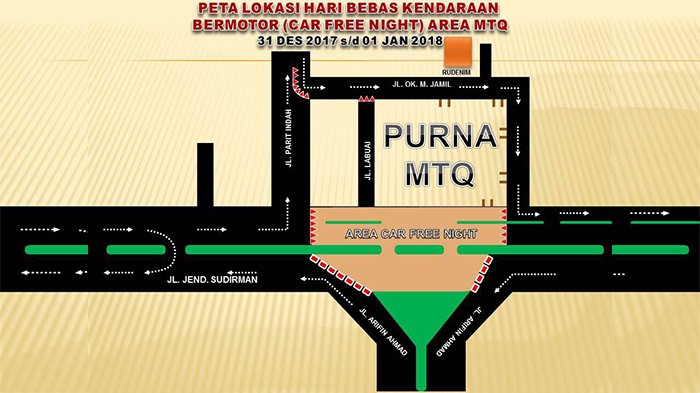 Bagi masyarakat dari arah kota menuju Simpang Tiga, nanti sebelum MTQ akan dialihkan ke Jalan Parit Indah dan masuk Jalan OKM Jamil. Dari sana masyarakat bisa masuk ke Jalan Sudirman setelah MTQ. Untuk Jalan Parit Indah sendiri akan dibuat satu jalur di mana dari arah Labersa tidak dapat berbelok ke Jalan Parit Indah yang mengarah ke Jalan Sudirman.