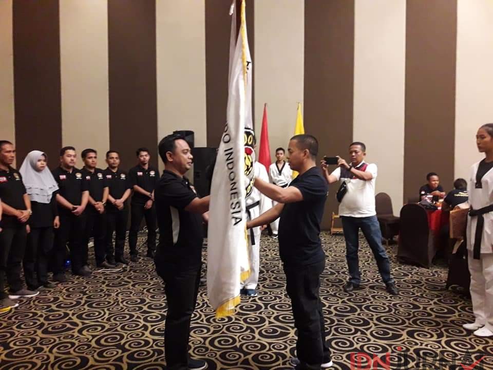 PEKANBARU - Ketua Taekwondo Indonesia (TI) Kota Pekanbaru, Muhammad Jamil dan pengurus resmi dilantik Ketua Umum Pengprov TI Riau, Amran Tambi, Jumat (18/1/2019) malam. Dalam kesmeoatan tersebut, Amran Tambi berharap pengurus TI Pekanbaru mampu meningkatkan prestasi tekwando di Kota Pekanbaru.