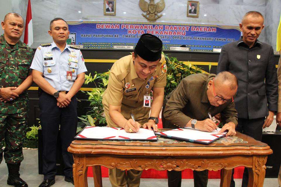 PEKANBARU - Setelah pekan kemarin DPRD Kota Pekanbaru mengesahkan tiga Peraturan Daerah (Perda), pekan ketiga bulan Januari 2019 ini kembali mengesahkan dua Ranperda. Yaitu Perda tentang Pengelolaan Barang Milik Daerah dan Perda Kota Pekanbaru Perubahan kedua atas Perda No 2 Tahun 2015 tentang Penyertaan Modal Daerah dan Penambahan Penyertaan Modal Daerah Kepada BMUD dan Badan Hukum Lainnya.