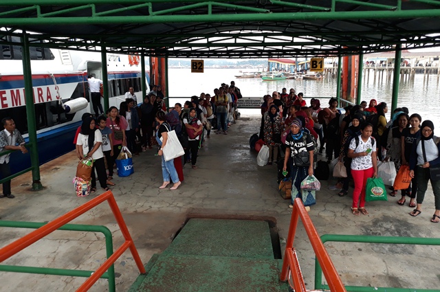 TANJUNGPINANG - Sebanyak 340 orang Tenaga Kerja Indonesia (TKI) telah dideportasi dari Malasyia sepanjang 2019. TKI itu dipulangkan ke Indonesia dari Malaysia mengunakan kapal feri lewat Pelabuhan Internasional Sri Bintan Pura (SBP) Tanjungpinang.