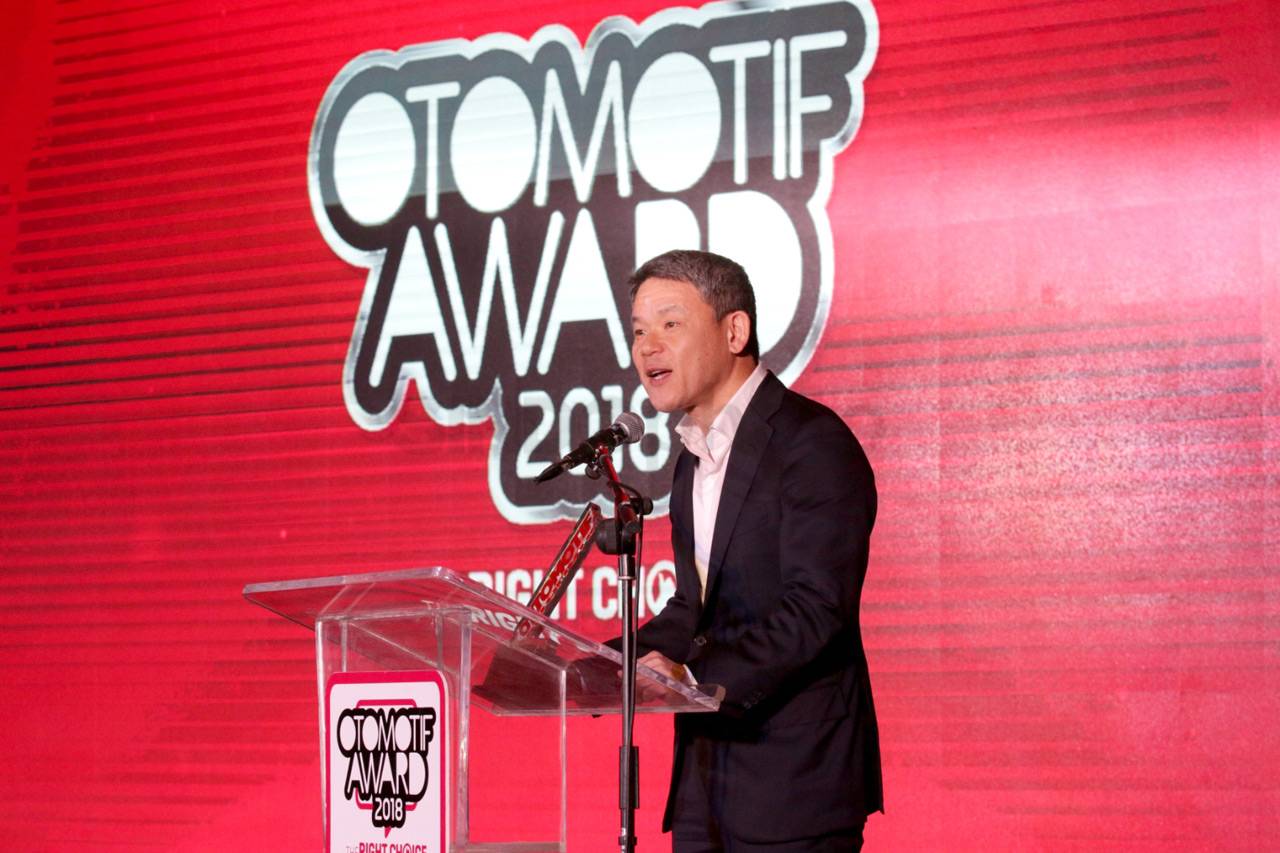 Presiden Direktur PT Mitsubishi Motors Krama Yudha Sales Indonesia (MMKSI) Kyoya Kondo saat memberi sambutan di ajang Otomotif Award (dok.Mitsubishi)