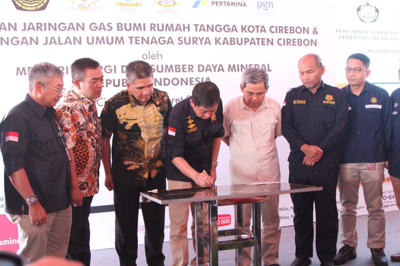 Bertempat di Kantor Kelurahan Kalijaga, Harjamukti, Kota Cirebon, Kamis (21/3/2019), Menteri ESDM Ignasius Jonan didampingi Dirjen Migas Djoko Siswanto, Walikota Cirebon Nashrudin Azis serta Dirut PT PGN Gigih Prakoso, meresmikan beroperasinya jargas di Kota Cirebon, Provinsi Jawa Barat sejumlah 3.503 SR.