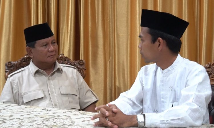 PEKANBARU - Calon Presiden nomor urut 02, Prabowo Subianto melakukan pertemuan dengan Ustaz Abdul Somad. Pertemuan tersebut disiarkan di TV One dan chanel Tafaqquh video, Kamis (11/4/2019).