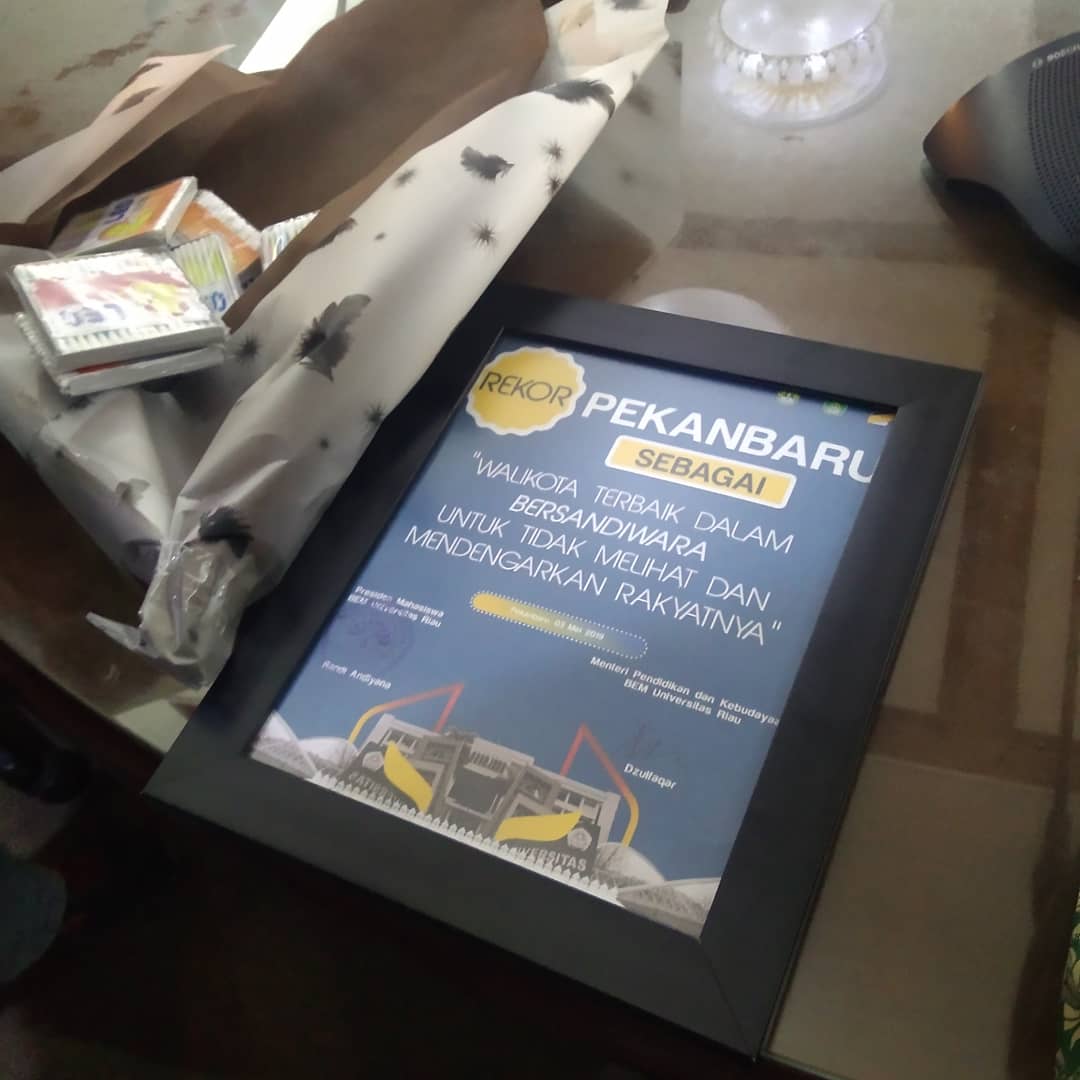 Usai audisensi yang menurut Wako cukup 'membuka mata dan telinga' mereka ini, Presiden Mahahasiswa Universitas Riau (UR), Randi Andiyana tetap menyebut Wako tidak peduli dan tidak mendengar keluhan para guru ASN tersebut. Dia juga memberikan plakat bertuliskan "Wali Kota Terbaik Dalam Bersandiwara Untuk Tidak Melihat Dan Memdengarkan Rakyatnya" serta cutton bud. Dengan wajah heran dan sedikit kesal, wako mengembalikan 'Plakat' tersebut dan menolak menerimanya.