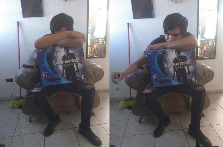 Dalam sebuah postingan yang viral di Facebook, menampilkan sederet foto seorang pria dewasa dengan kotak konsol game PlayStation 4.