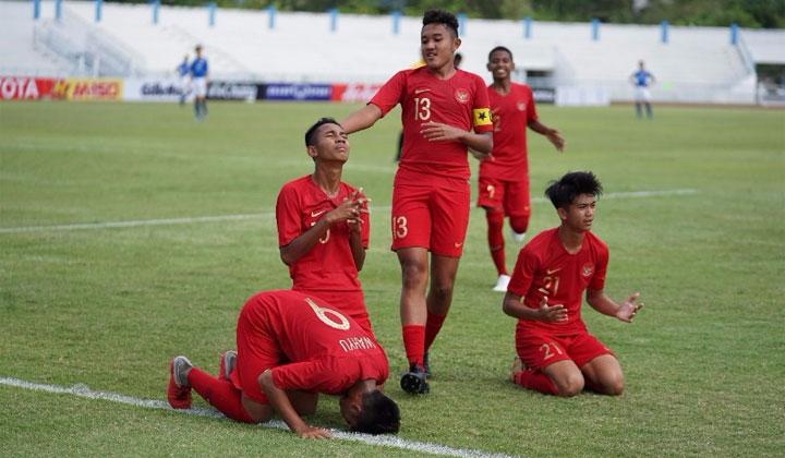 CHONBURI - Tim Nasional (Timnas) Indonesia U-15 keluar sebagai juara Grup A Piala AFF 2019 setelah menang telak 5-0 atas Myanmar di matchday kelima, Ahad (4/8/2019) sore WIB. Kepastian itu didapat usai Vietnam secara mengejutkan menang tipis 1-0 atas Timor Leste di laga terakhir.