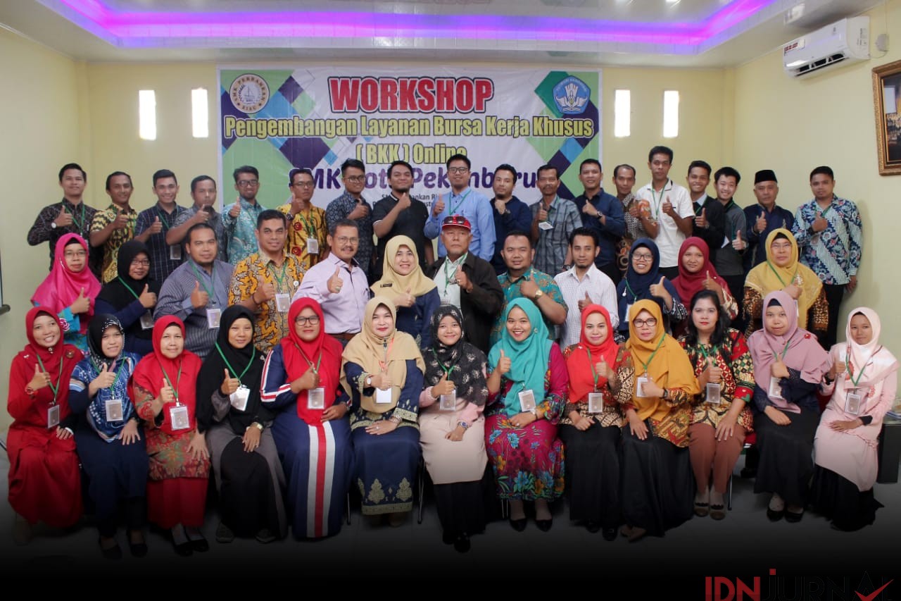 PEKANBARU - SMK Perbankan Riau menggelar Workshop Pengembangan Layanan Bursa Kerja Khusus (BKK) Online, Sabtu (3/8/2019). BKK online tersebut merupakan program Direktorat Pembinaan SMK Kementrian Pendidikan dan Kebudayaan RI dan SMK Perbankan Riau menjadi salah satu penerima bantuan. Kegiatan pengembangan layanan BKK Online dihadiri oleh 50 SMK yang ada di Kota Pekanbaru.