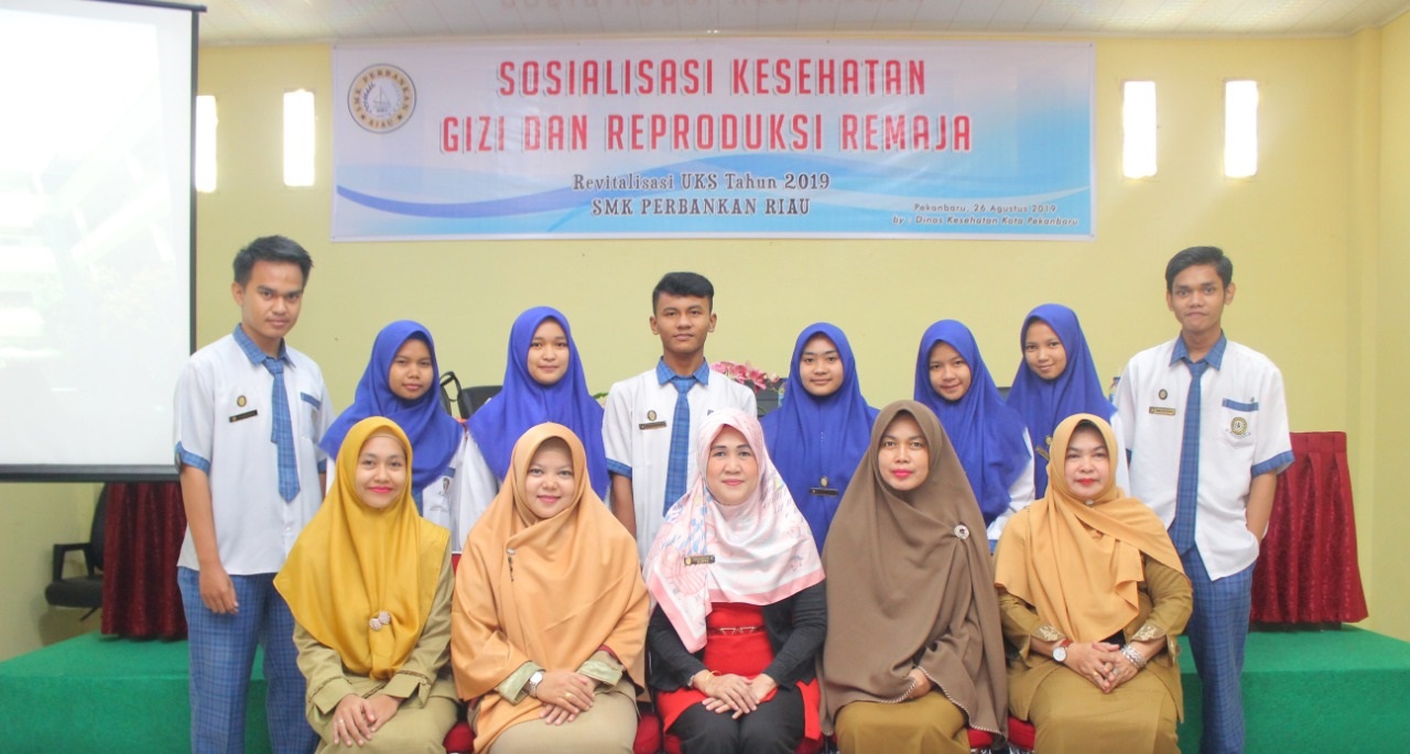 Untuk itu, SMK Perbankan Riau melakukan sosialisasi terkait kesehatan gizi dan reproduksi remaja, Senin (26/8/2019).  Dalam kegiatan yang merupakan bagian dari kegiatan Revitalisasi Usaha Kesehatan Sekolah (UKS) ini, Dr Leni Marzal didapuk sebagai narasumber. Dijelaskan Kepala SMK Perbankan Riau Yossy