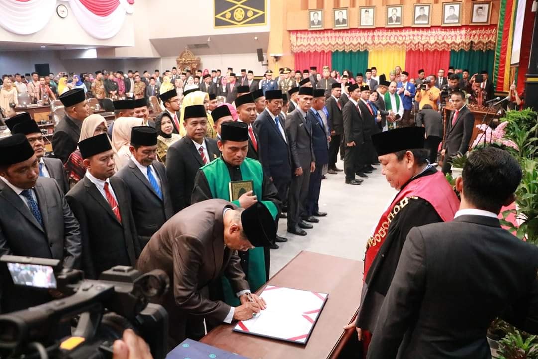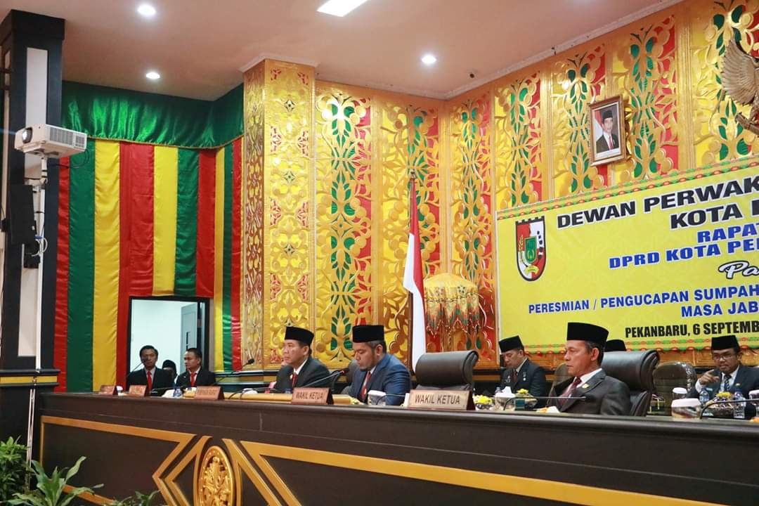 PEKANBARU - Sebanyak 45 Anggota DPRD Kota Pekanbaru periode 2019-2024 dilantik dan diambil sumpah jabatannya melalui rapat paripurna di ruang paripurna gedung DPRD setempat, Jumat (6/9/2019).