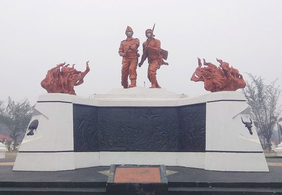 PEKANBARU - Tidak hanya masyarakat yang pakai masker, patung replika pejuang di depan rumah Dinas Gubernur Riau, jalan Diponegoro Pekanbaru, Riau juga dipakaikan masker.