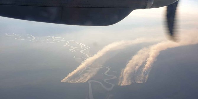 Akibat kabut asap, jarak pandang di wilayah setempat juga menjadi sangat terbatas.