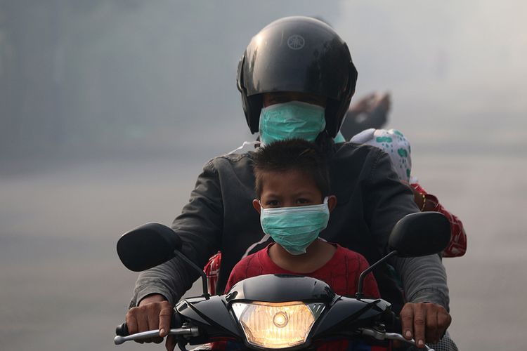 Dari data BMKG, pantauan terhadap konsentrasi PM10 pada pukul 12.00 WIB, Kamis (19/9/2019) menunjukkan angka 389.85 ugram/mg3 yang berarti itu berada pada level berbahaya.