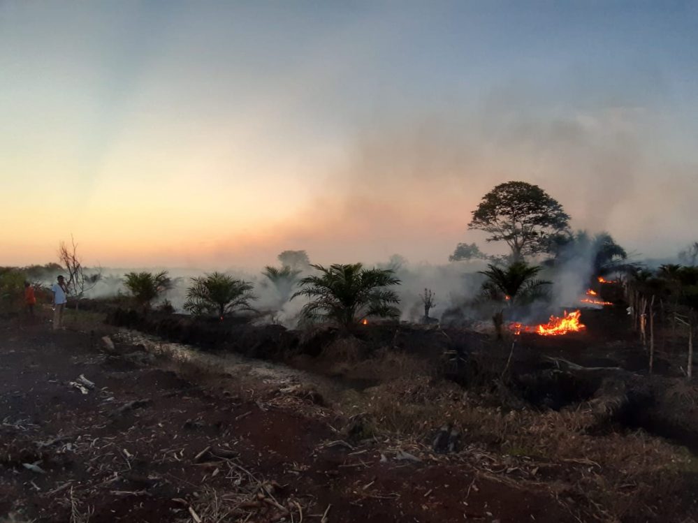 RENGAT - Lahan seluas 60 hektare di real PT Tugu Palma Sumatera di Desa Payarumbai Kecamatan Seberida Kabupaten Indragiri Hulu, Riau hingga Sabtu (28/9/2019) masih membara. Kebakaran lahan tersebut sudah berlangsung sejak Selasa (24/9/2019) lalu.